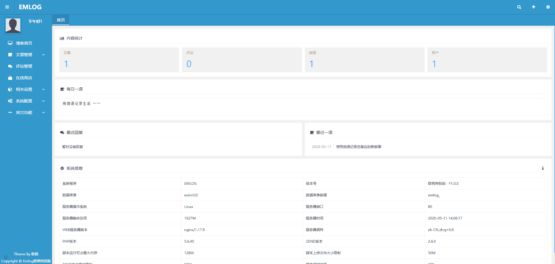 Emlog晗枫特别版v1.0.0_2020-05-11_首发版本