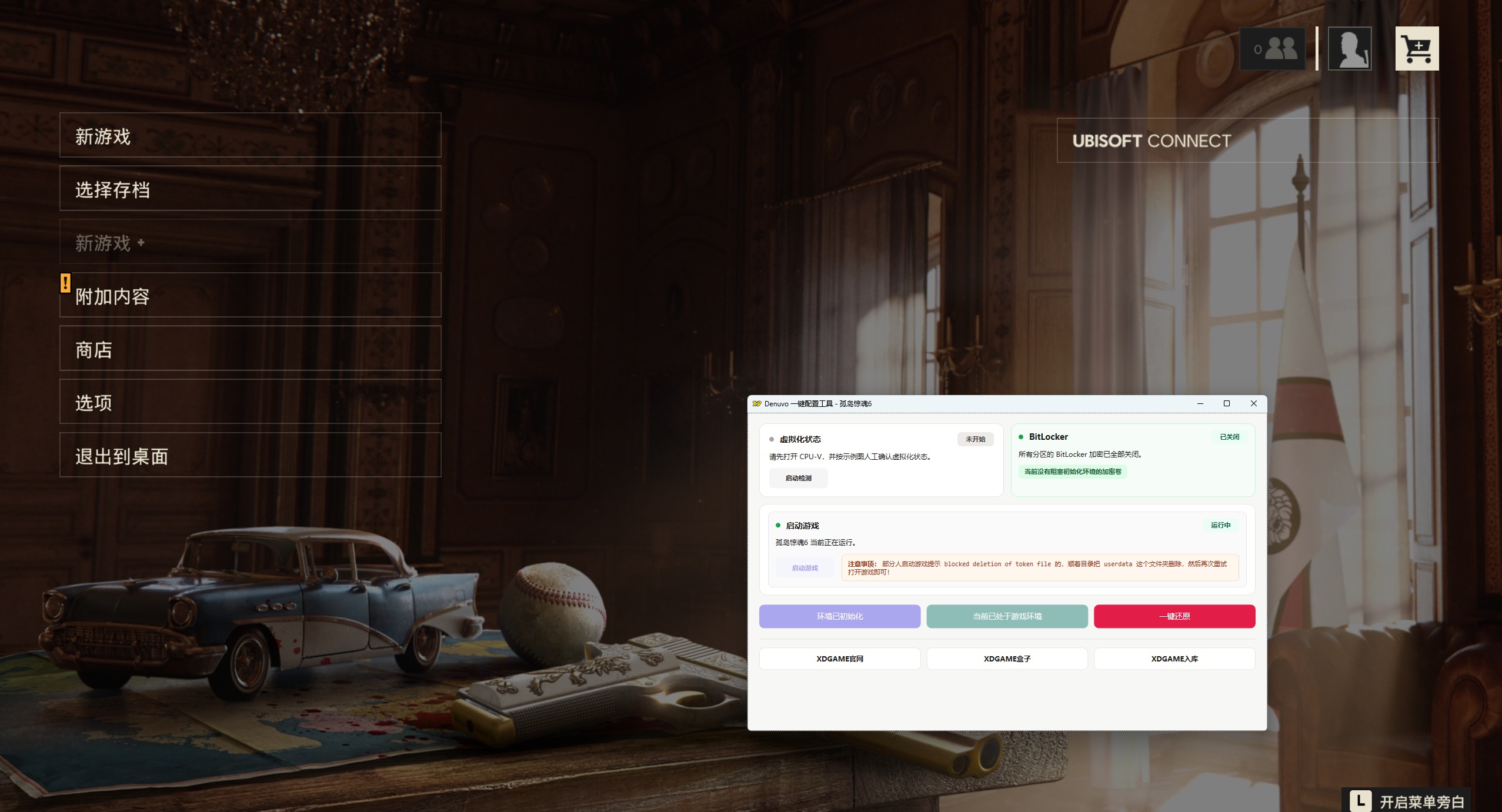 《孤岛惊魂6》中文版是一款开放世界第一人称射击游戏,玩家将在热带岛屿雅拉展开反抗独裁的冒险。游戏提供丰富的主线与支线任务、自由探索、武器改装与伙伴系统,带来紧张刺激的战斗与沉浸式剧情体验。 虚拟工具现已进入VBS1.5成熟阶段(想体验的可以试试了)虚拟机只是用来绕D密,所以玩起来和正常版基本没差,几乎没有性能损耗。 没动手能力嫌麻烦不建议搞(其实也没想象那么麻烦),不过你真的能搞懂,D加密游戏有相关补丁全都是可以玩的。 Q1:会不会搞坏电脑 A:不保证所有人硬件都兼容都能玩,考虑清楚在下!部分人存在一定蓝屏/死机/损坏系统风险!玩不了就删不提供任何折腾帮助! Q2:游戏会不会很卡,容易闪退 A:虚拟机仅用来绕D密,几乎不占用性能。这些大作要求配置较高,有些优化也一般,(能玩情况下)如果闪退,你玩正版极大概率也会闪退 Q3:有些游戏个别CPU玩不了吗? A:最近更新的游戏补丁,大部分都能玩,之前游戏的补丁作者也一直不断更新迭代中,这是虚拟机正在迈向成熟阶段,但不保证所有人硬件都能玩考虑清楚在下。 打开游戏之前的环境准备(所有人都必须做 只需要做一次 后续畅玩所有D加密游戏) 进入主板bios设置【先在电脑任务管理器→性能→CPU→右下角看看虚拟化是否已开启 开了就无需在进bios开启】 开启虚拟化: 找到 SVM Mode (AMD) 或 Intel Virtualization Technology (Intel),设置为 Enabled。 注:每个主板具体设置不同 不知道设置可以百度查询或问豆包自己主板型号的相关设置 虚拟化开好后:打开Denuvo.exe 点击软件的初始化,然后重启电脑【开机时点F7 或 手动选择禁用驱动程序强制签名】 重启电脑后继续打开Denuvo.exe点击 启动游戏 → 开始玩耍 注意事项:部分人启动游戏提示blocked deletion of token file的,顺着目录把userdata这个文件夹删除然后再次重试打开游戏即可! 站长亲测截图 v1.8.0|整合全DLC|容量171GB|官方简体中文|支持键盘.鼠标.手柄游戏介绍