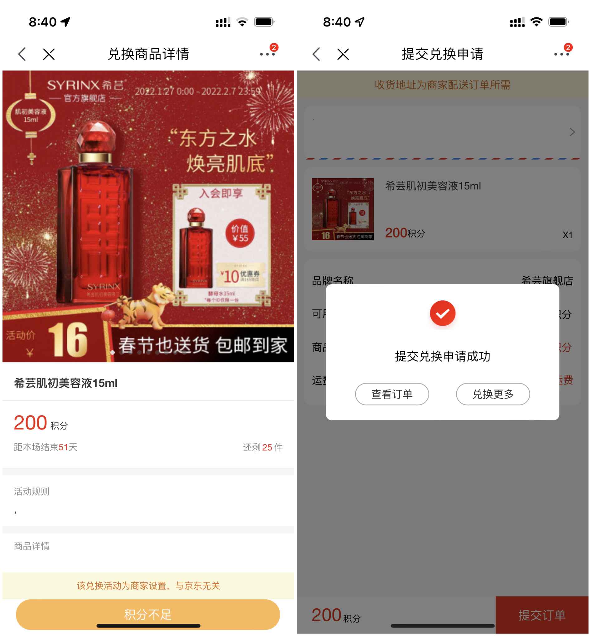 可以选择美容液15ML或120g清新牙膏,数量有限,直接兑换即可