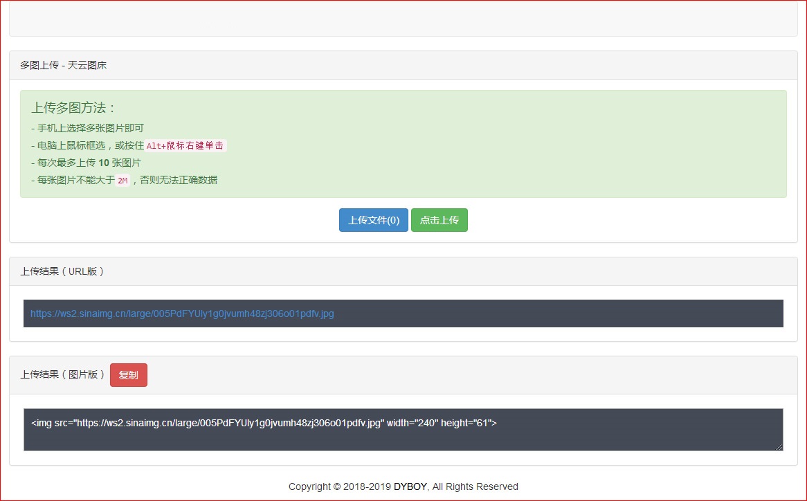 天云免费新浪图床源码V1.1 批量上传图片获取外链